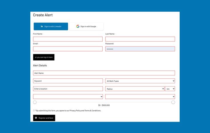 Alllow candidates to register their details and set up job alerts. Optional push into your ATS.