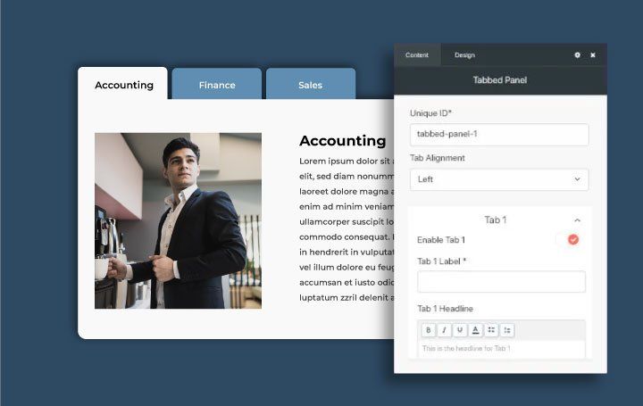 This widget is similar to the Tabs widget but with more advanced functionality.